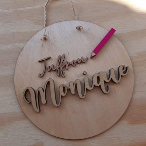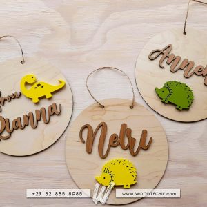 The Mini Name Board is exotic plywood with a name cut out and a simple shape cut out.