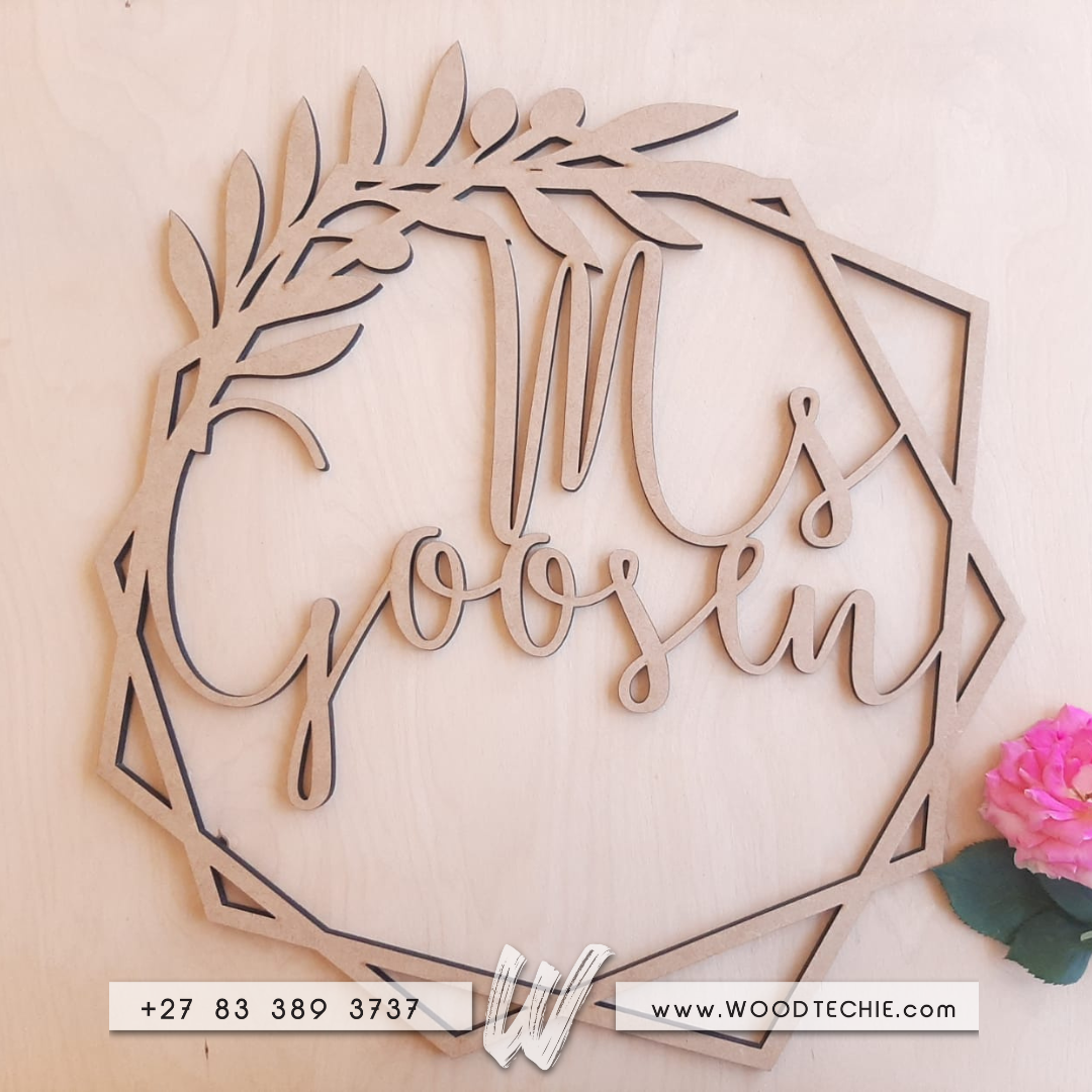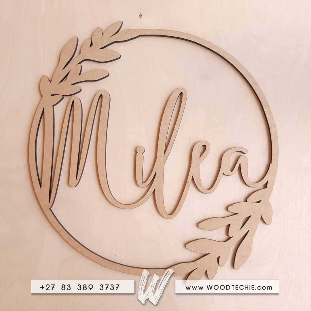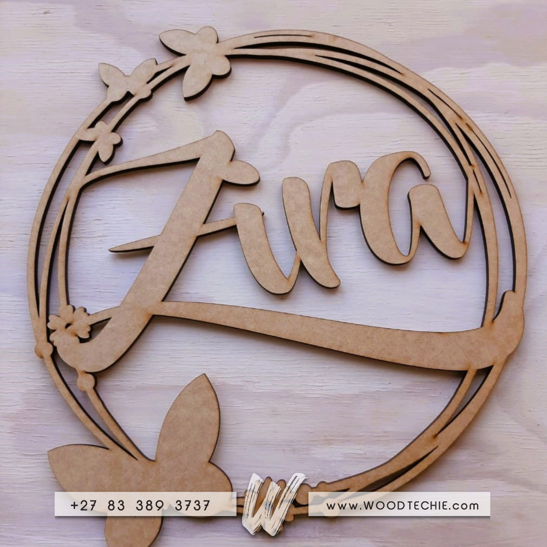 Our plain, unpainted name wreath is made from MDF wood. Choose from different fonts and themes